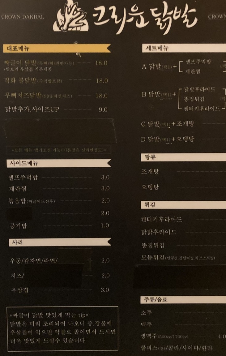 식당명: 크라운 닭발